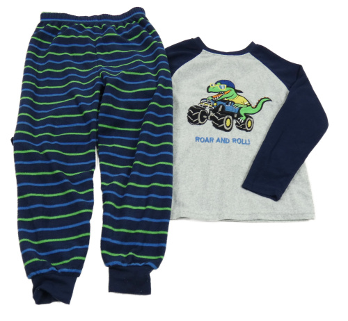 Sivo-tmaovmodré fleecové pyžama s dinem Primark