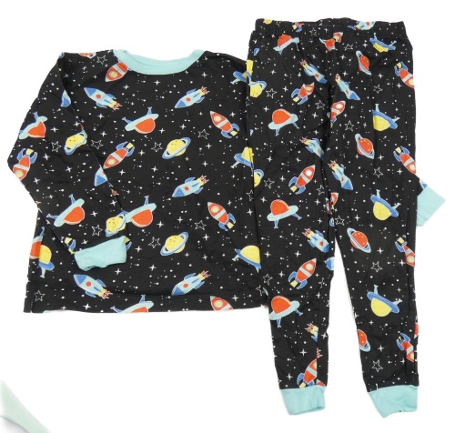 Čierne bodkovaná é pyžama s raketami
