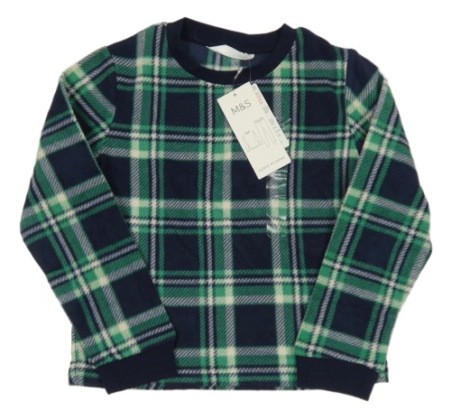 Nové - tmavomodro-zeleno-biela kockovaná fleecová pyžamová mikina M&S