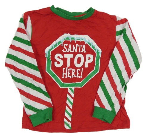 Červeno-zeleno-biele pyžamové tričko so značkou a pruhovanymi rukávy