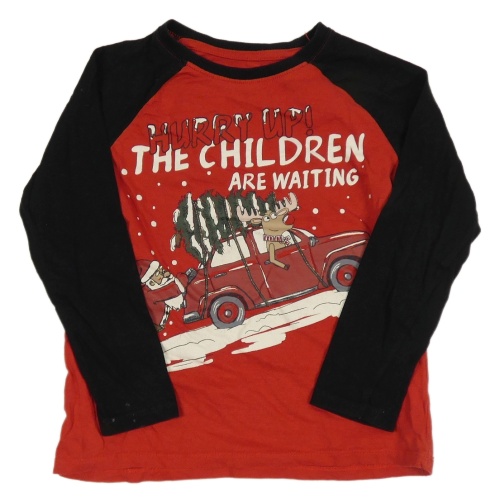 Červeno-čierne pyžamové vianočné tričko s autom a Santou a sobom little kids