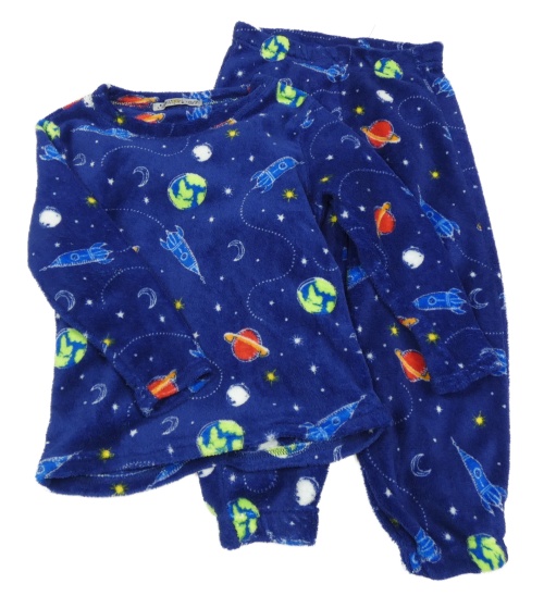 Tmavomodré plyšové pyžama s vesmírom