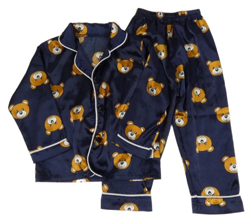 Tmavomodré saténové pyžama s medvedíkmi