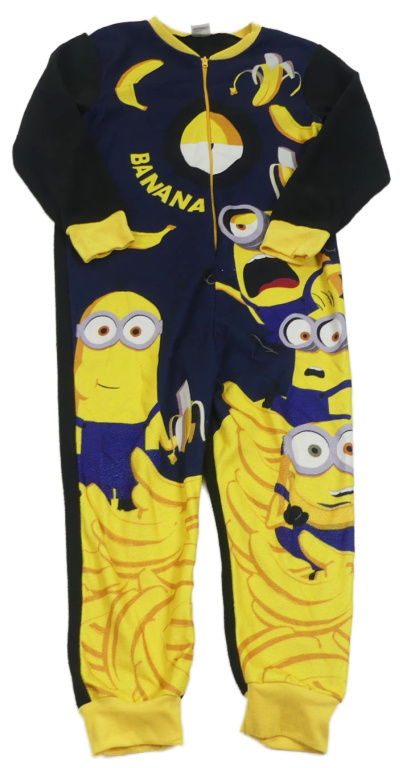 Čierno-tmavomodro-žltý fleecový overal s Mimoni
