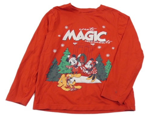 Červené pyžamové tričko s Minnie a Mickey a Plutem a vianočný motívom PRIMARK