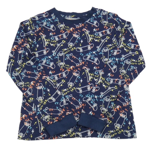 Tmavomodro-farebné vzorované pyžamové tričko so skejty