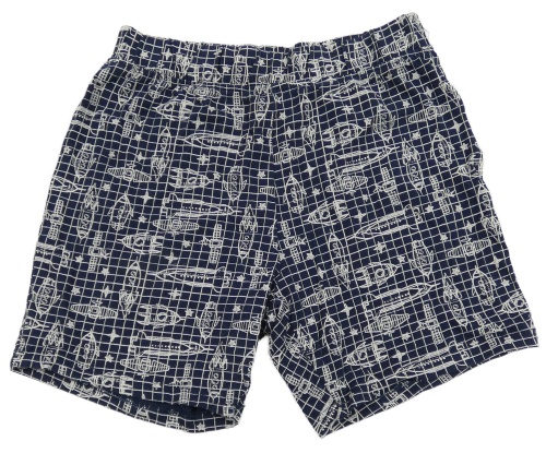 Tmavomodro-biele kockované pyžamové kraťasy s raketami POCOPIANO