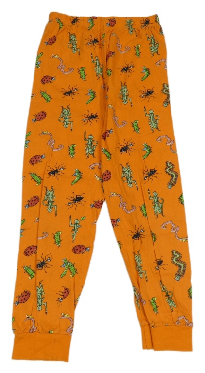 Oranžové pyžamové nohavice s brouky a pavouky a žížalami Tu