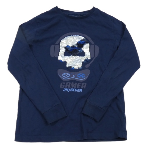 Tmavomodré pyžamové tričko s lebkou z flitrů Next