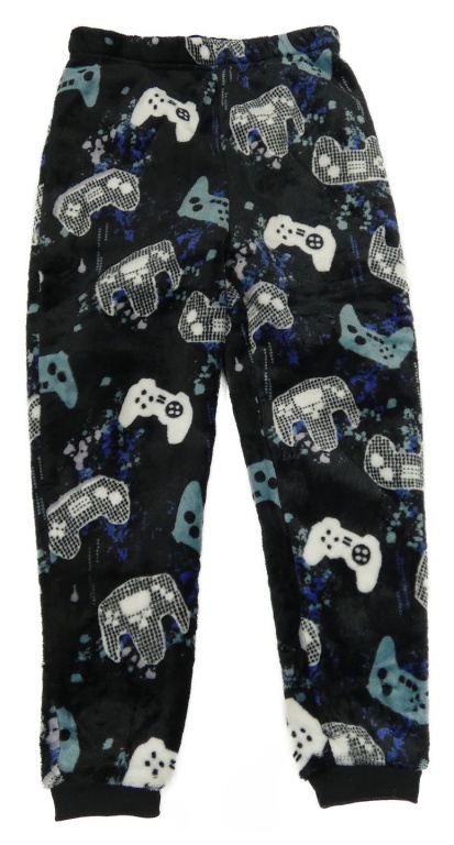 Čierne skvrnité chlpaté pyžamové nohavice s ovladači Peacocks