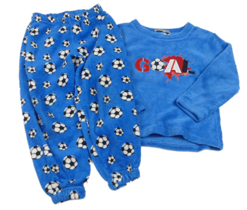 Modré chlpaté pyžama s futbalovymi loptami