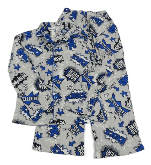 Sivo-modré fleecové pyžama s nápismi Peacocks