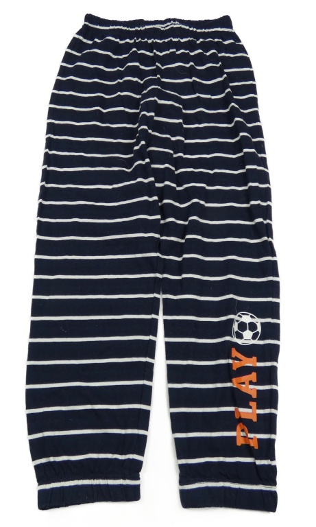 Tmavomodro-biele pruhované pyžamové nohavice s nápisom Yigga