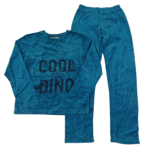 Petrolejové zamatové pyžama s dinosaurami Vertbaudet