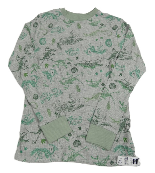 Nové - sivo-olivové melírované rebrované pyžamové tričko s kostrami dinosaurů St. Bernard