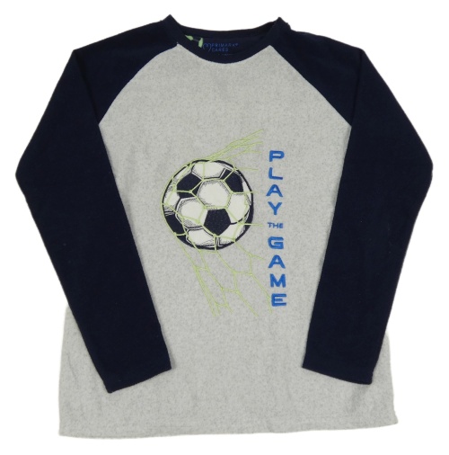 Svetlošedá -tmavomodrá melírovaná fleecová pyžamová mikina s loptou a nápisom PRIMARK