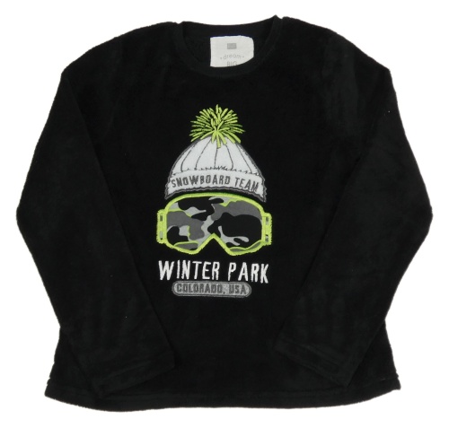 Čierne plyšové pyžamové tričko so zimním motívom F&F
