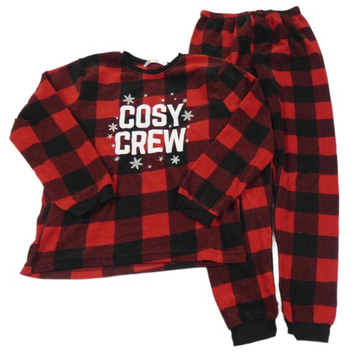 Červeno-čierne kockované fleecové pyžama s nápisom