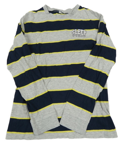 Sivo-tmavomodro-žlté pruhované pyžamové tričko s nápisom