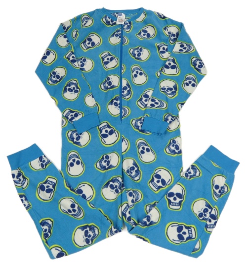 Modrý fleecový overal s lebkami Peacocks