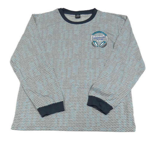 Sivo-modré vzorované pyžamové tričko so sluchátky