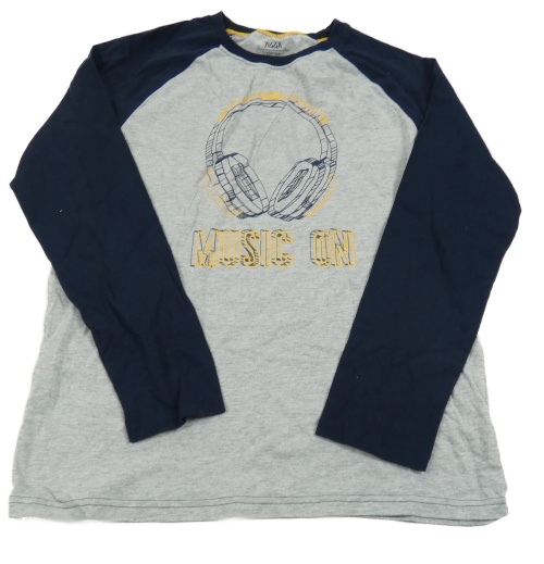 Sivo-tmavomodré melírované pyžamové tričko so sluchátky a nápisom YIGGA