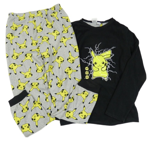 Čierno-sivé fleecové pyžama s Pikachu Primark