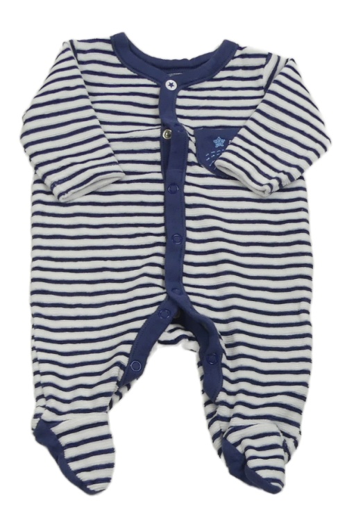 Bielo-tmavomodré pruhovaný zamatový overal s kapsičkou Nutmeg