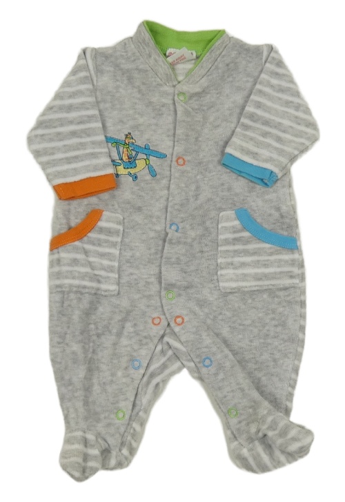 Sivo-biely zamatový overal s lietadlom s žirafou