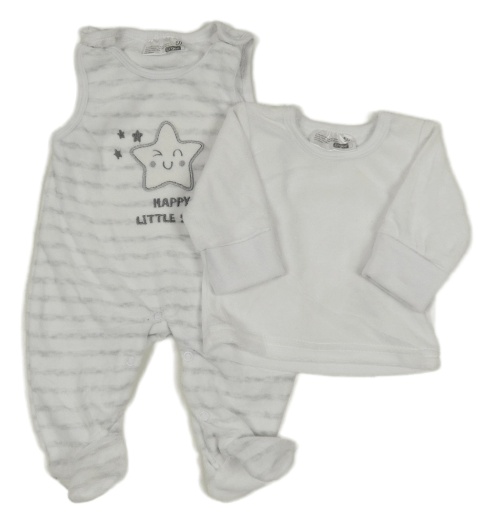 2set - Bílo-šedé pruhované sametové dupačky s hviezdičkovanou + tričko Ergee