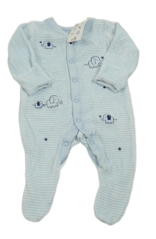 Nové - světlemodro-biely pruhovaný zamatový overal so sloníky NUTMEG