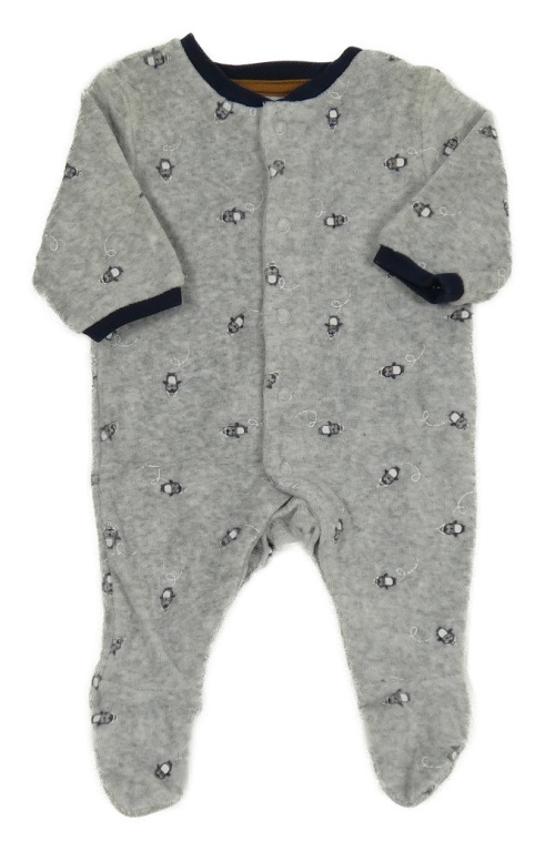 Sivý zamatový overal s tučňáky