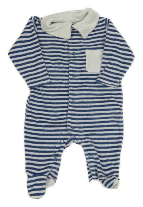Bielo-modrý zamatový pruhovaný overal s golierikom Early Days