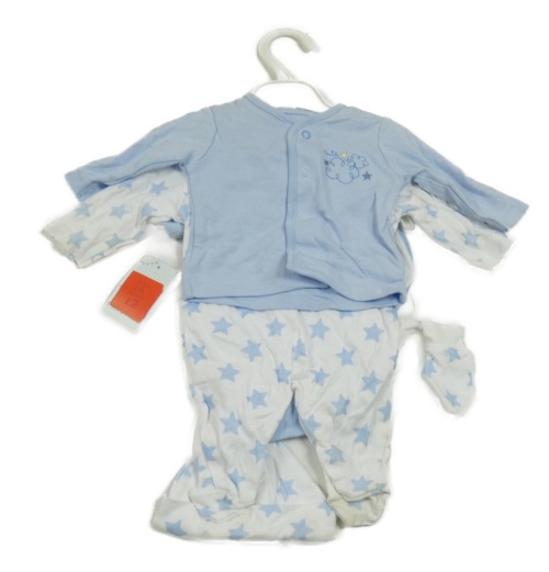 • Nové - 6Set - Bielo-svetlomodrý overal s hviezdičkami a rukavice a čapica a bryndák + svetlomodrá prepínaci mikina + rebrované body George