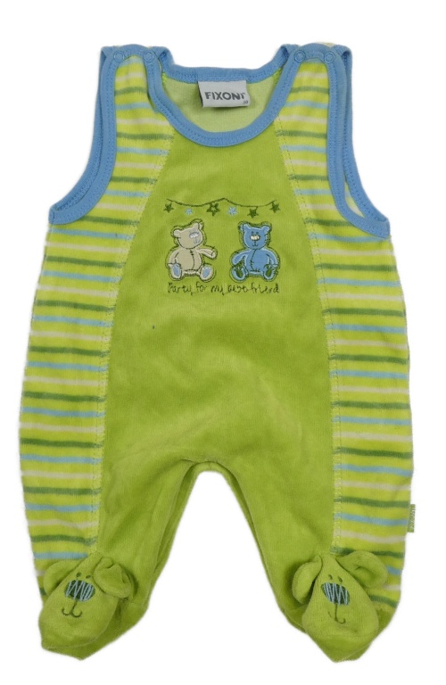 Limetkovo-pruhované sametové dupačky s medvedíkmi Fixon