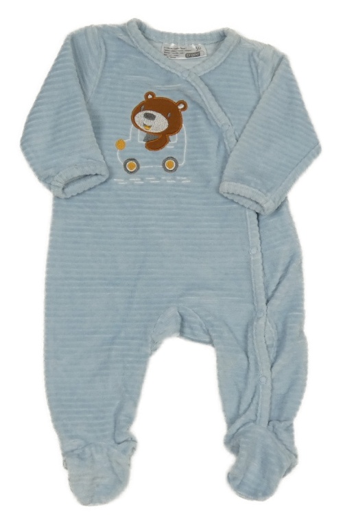 Svetlomodrý rebrovaný plyšový overal s medvedíkom Ergee