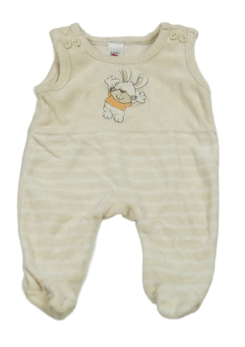 Béžovo-bílé sametové dupačky s pruhmi a králikom C&A