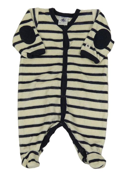 Světlebéžovo-tmavomodrý pruhovaný zamatový overal Petit Bateau