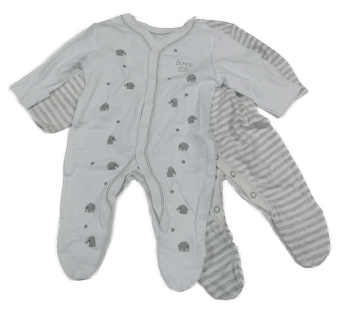 Nové - 2x overal - bílý so slony + bílo-šedý pruhovaný