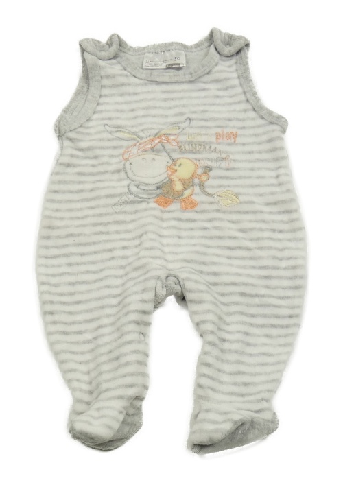 Bílo-šedé pruhované sametové dupačky s oslíkem Ergee