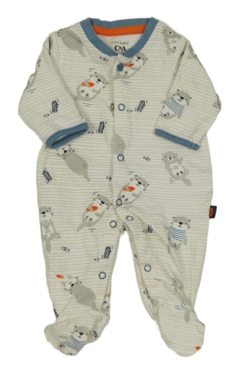 Smotanový pruhovaný overal s vydrami C&A
