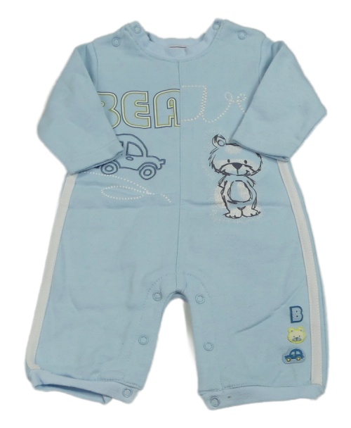 Svetlomodrý teplákový overal s nápisom a medvěďom