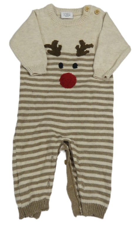 Béžovo-hnedý pruhovaný pletený overal so sobom