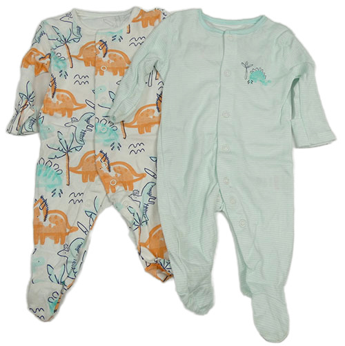 2x - Overal - Bílý s dinosaurami a palmami. mátovo/bílý pruhovaný s dinosaurom a palmou Matalan