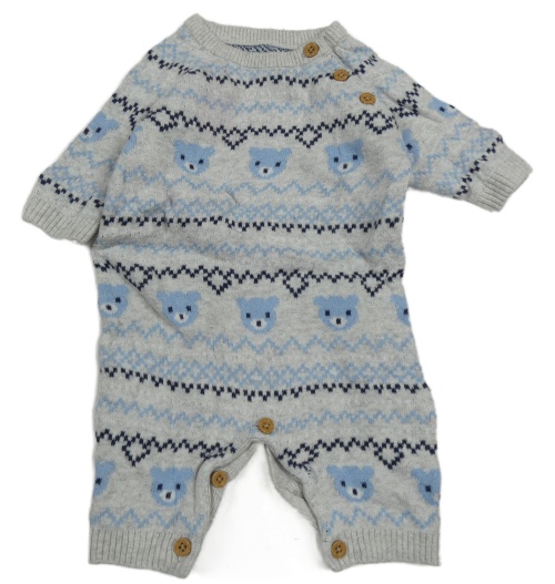 Sivo-modrý vzorovaný pletený overal s medvedíkmi