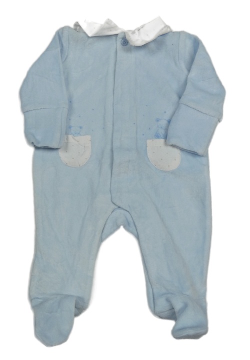 Nové - Svetlomodrý zamatový overal s medvedíkmi a golierikom St. Bernard