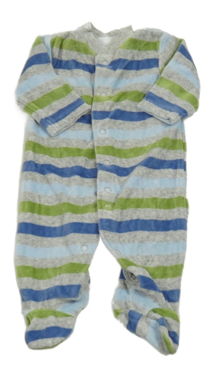 Sivo-modro-zelený pruhovaný zamatový overal