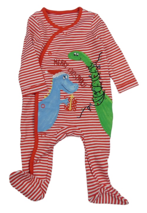 Červeno-biely pruhovaný overal s dinosaurami St. Bernard