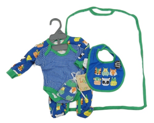 Nové - 4set - Tmavomodro-zelený overal so zvířátky + body + bryndák + rukavice