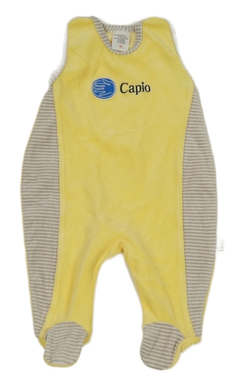 Žluto-šedé pruhované sametové dupačky s nápisom